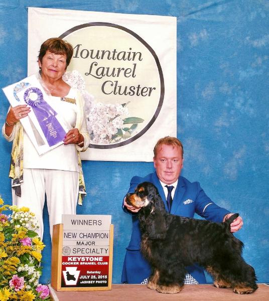 Winners Dog for a Major and New Champion! At the Keystone Cocker Spaniel Specialty under breeder Judge Mrs. Nancy Gallant, July 25th 2015. |