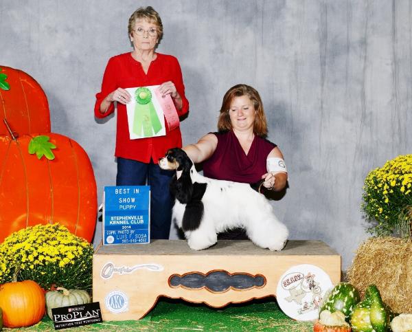 Best Puppy In Show.. A great weekend for little Cherry and Vanita, a new Champion and then on to Best Puppy at the Stephenville Kennel Club in Texas on October 17th 2014. |