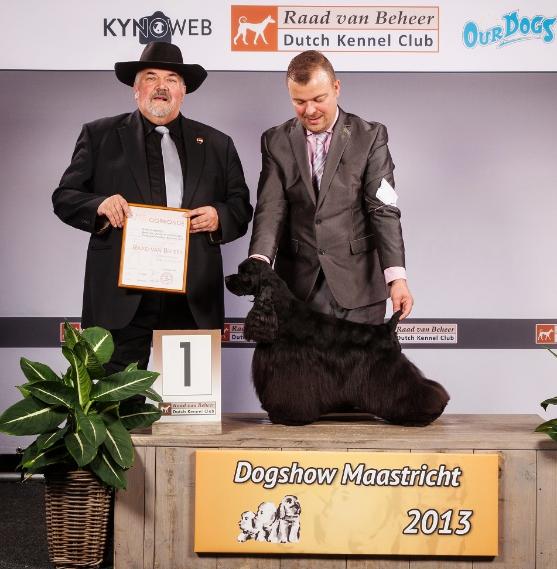 Best Black American Cocker at the World Gundog Show in Budapest 2013 under Judge Mr. Bob G. Smith. |