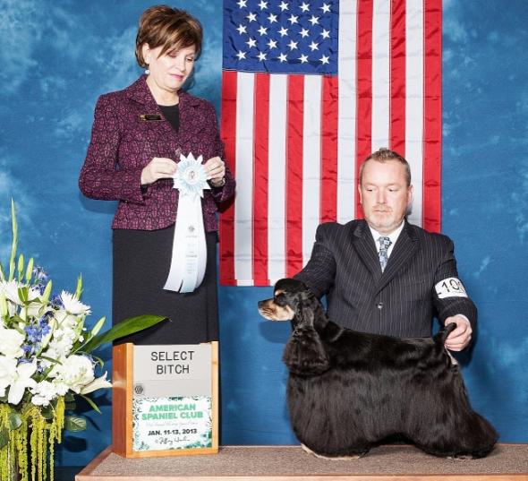 Select Bitch given by Breeder Judge Mrs. Patty Darke at the Jan. 2012 ASC Show, shown by Per. |