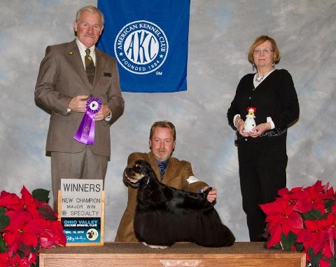 A Major to finish at the Ohio Valley Cocker Spaniel Club Specialty under Judge Mr. David Kittredge. |