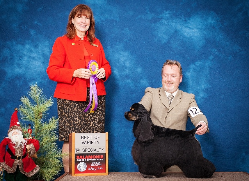 Best of Variety at the Ohio Valley Cocker Spaniel Club under breeder Judge Ms. Kathleen Egeland-Brock December 2014. |