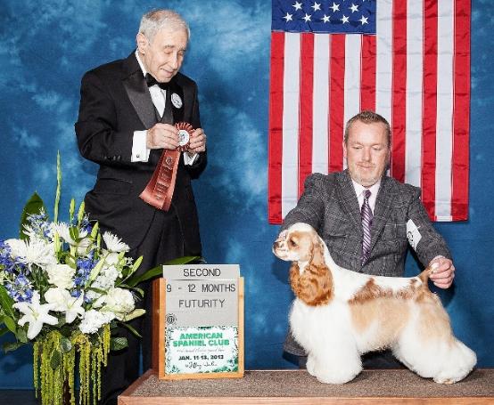 Placing 2nd in her 9-12 Class under Breeder Mr. Bill Gorodner at the January 2013 ASC Show. |